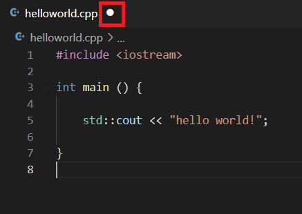 파일을 저장(Ctrl + S)하면 곱셈표시 ✖로 변한다.