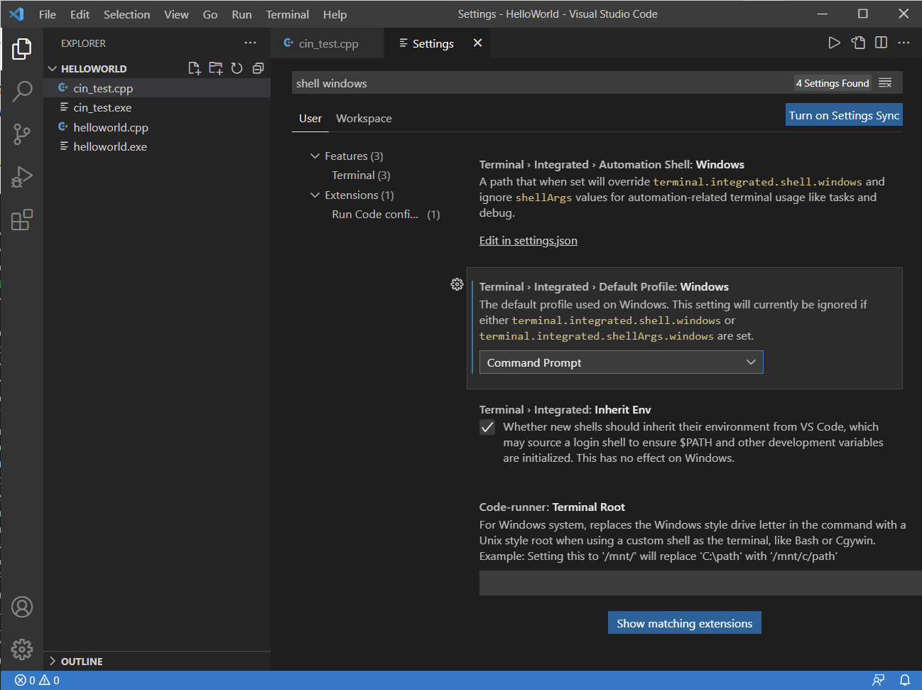 File > Preferences > Settings에 들어가서 shell windows를 검색해