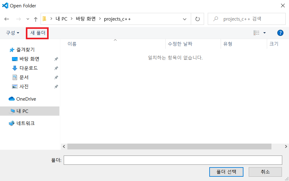 프로젝트를 저장하고자 하는 경로에서 '새 폴더'를 클릭해 원하는 프로젝트 이름을 입력한다.