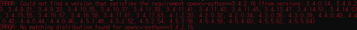 아래의 명령어를 통해 버전을 지정하여 새로운 OpenCV를 설치한다.