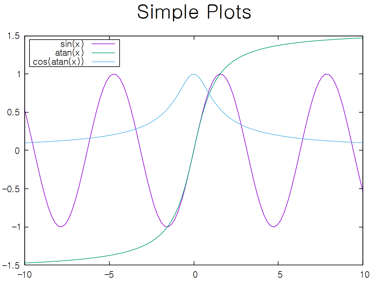 'plot [-10:10] sin(x),atan(x),cos(atan(x))')