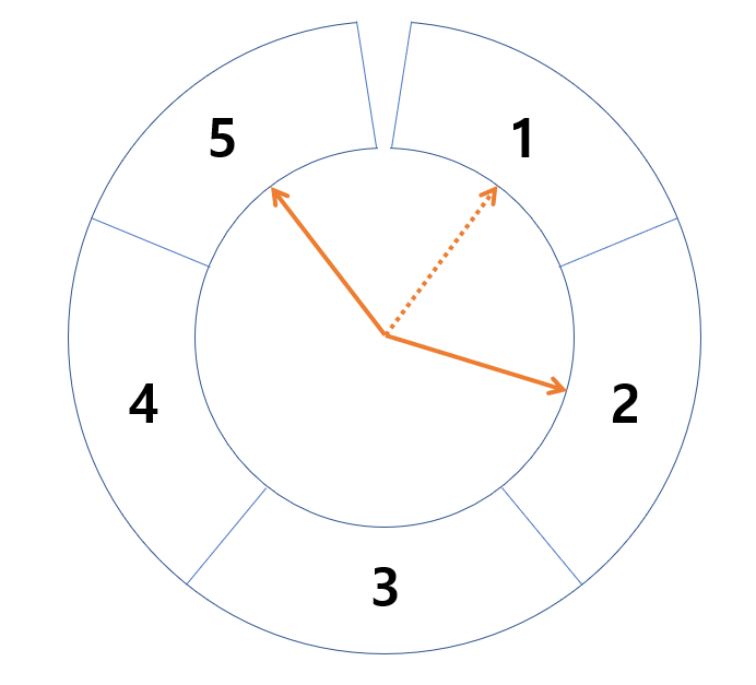 1번의 왼쪽 이웃은 5번, 오른쪽 이웃은 2번이다.