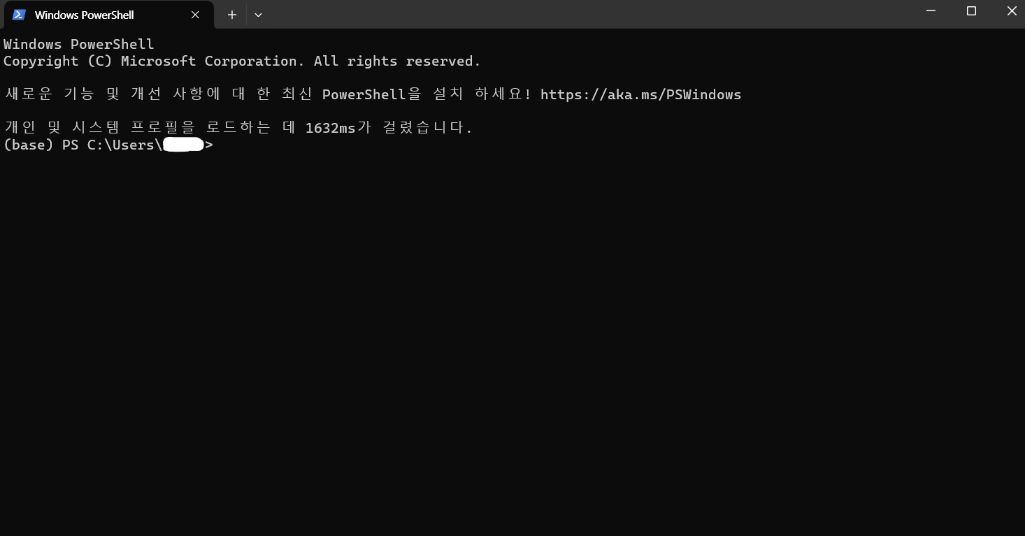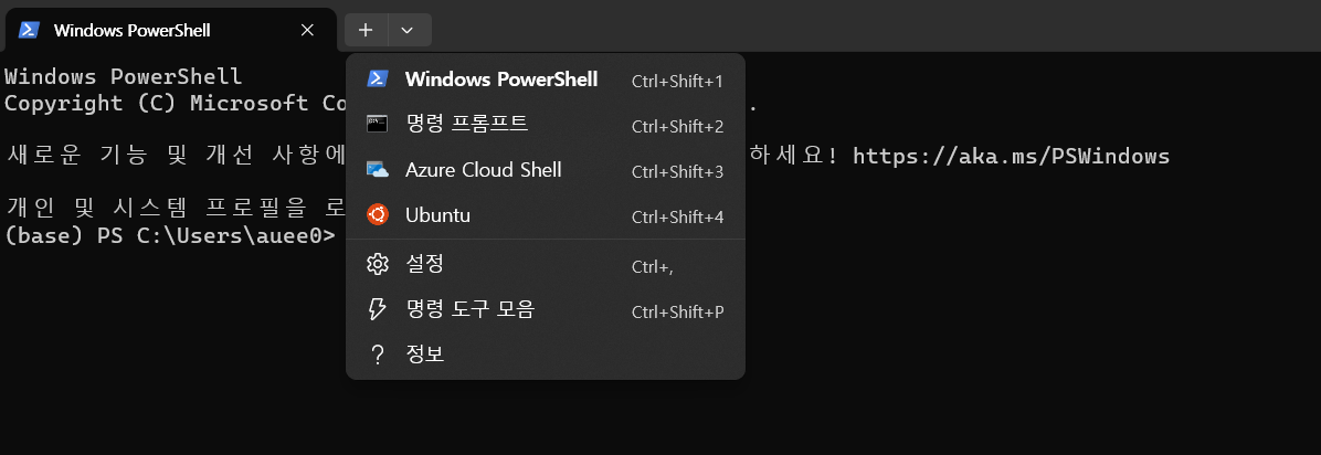 문제가 해결되었으니 Windows Terminal 앱을 다시 열어보면 오류 문구 없이 잘 실행되는 것을 확인할 수 있다.